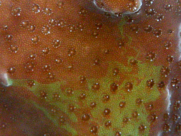 below is a shot of the underside of a pink millepora showing an area of