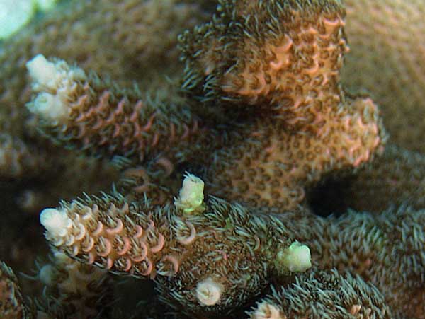 pocillopora pigment slowly migrates through the coral